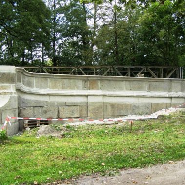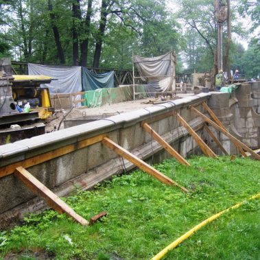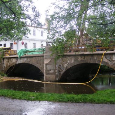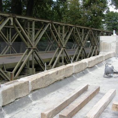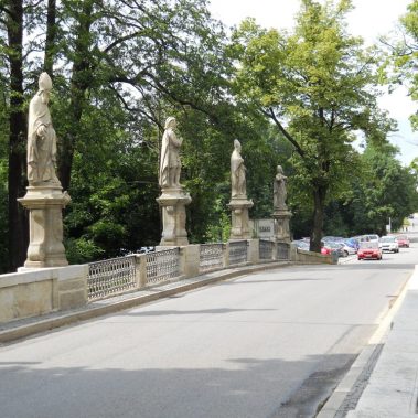The work involved in the project included the restoration of this Baroque monument as well as the technically demanding task of the height adjustment of the bridge required for the elevation of the carriageway. Prior to any construction work the bridge had to be surveyed using photogrammetric-geodetic method and detailed photo documentation and cataloguing of individual stone parts, undertaken in order to carry out the dismantling of the bridge structure. The eight statues of the saints were not part of the project restoration work. All construction and restoration works had fully respected the historical value and natural ageing process of the monument. The surface finish of all the new parts was harmonized with their older surroundings.
