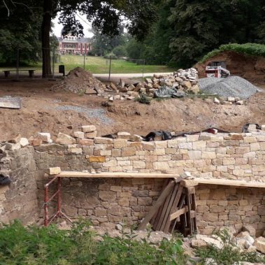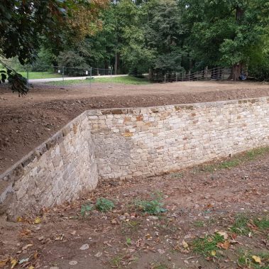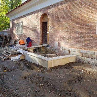 The scope of the works included restoration of the following historical objects: 1. Restoration of the Laudon Pavilion, 2. Restoration of the Dutch Peasant House basement, 3. Repair the Charlotte Chotek Chapel, 4. Restoration of the Egyptian Pavilion, 5. Reconstruction of retaining walls in the Fallow-deer Park, 6. Restoration of the saw pit, 7. Restoration of the Gardener’s House and 8. Renovation of the roofing of the Gardener’s House, 9. Repair of the “neck” of the north-east Chateau wing (the so-called neck is a connecting corridor between two castle wings covered by a terrace with decorative forged railings, with wooden gates, doors and staircases), 10. Repair of the Shepherd House building, 11. Repair of the Chateau gardening wall and 12. Securing of the archaeological find – a firehouse near the Orangery.