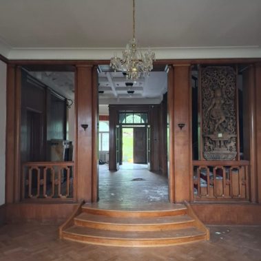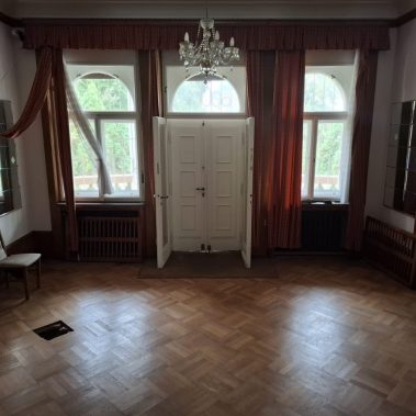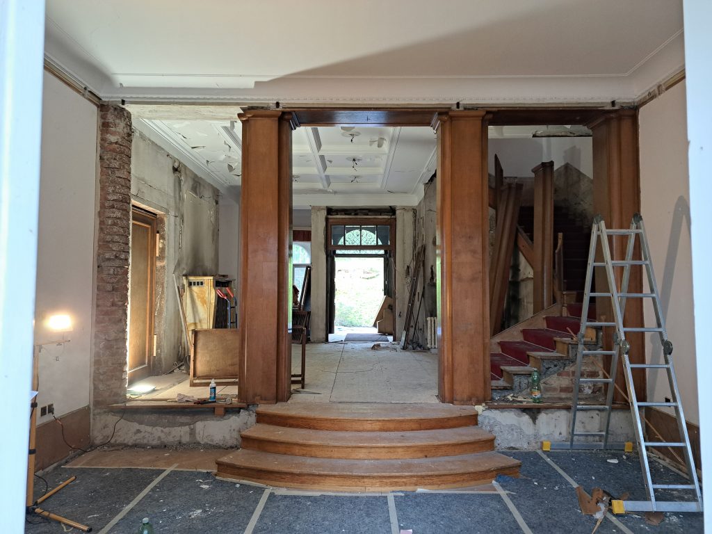 Work is being carried out under a special regime to restore the original wooden door frames, windows, doors, parquet floors, staircases, and decorative and artistic elements. The project, which also includes landscaping and garden modifications, will be completed in 2027.
