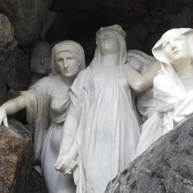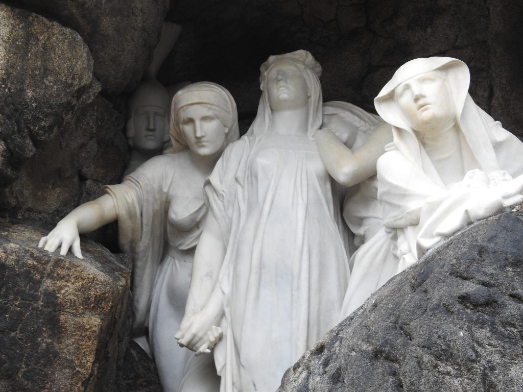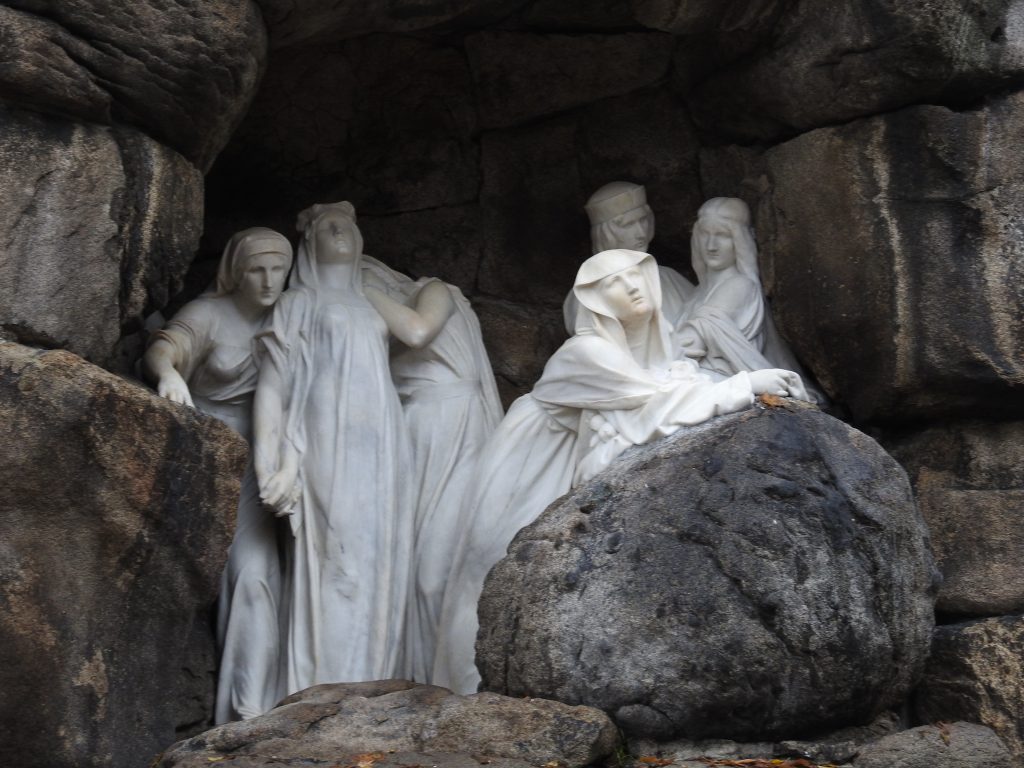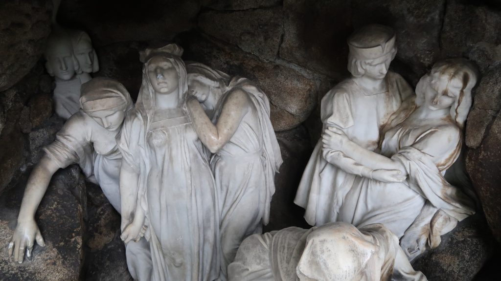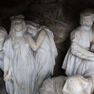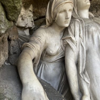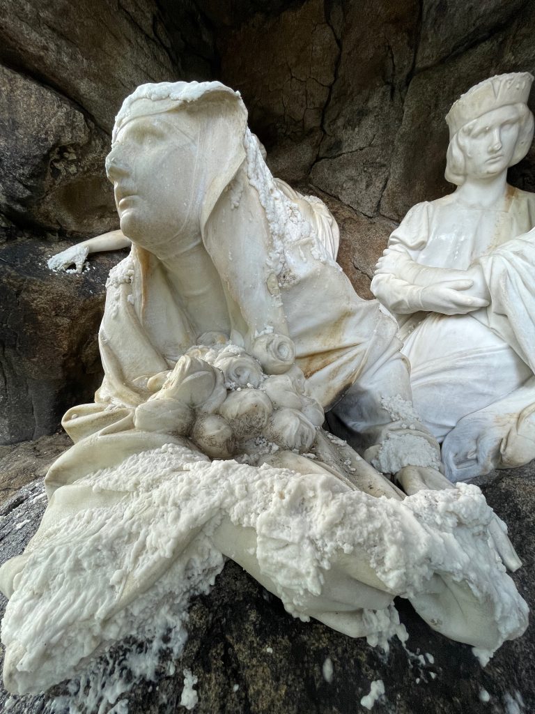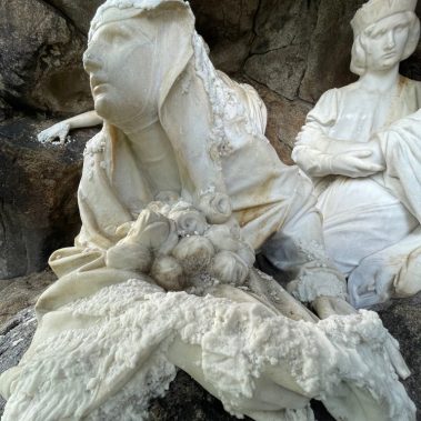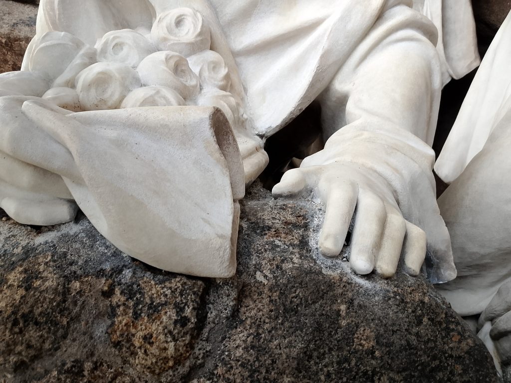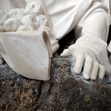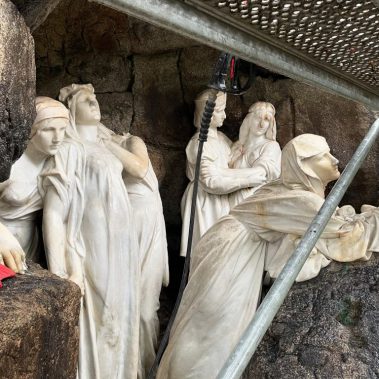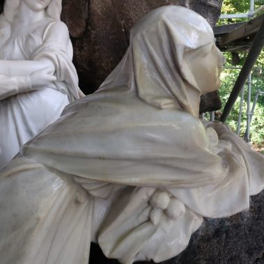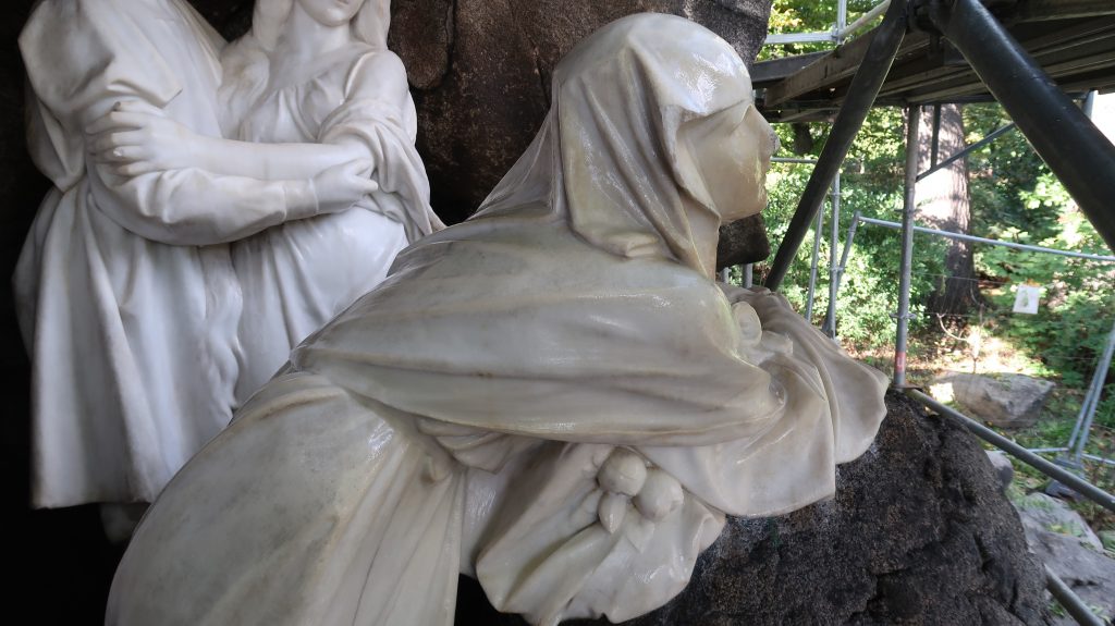 This was followed by the treatment of cracks in the rear parts of the sculpture’s drapery, sculptural retouching, and the remodeling of damaged parts of the sculpture (noses, fingers and draperies). Color retouching was performed using light-permanent pigments, the surface was preserved, and finally polished with microcrystalline wax.