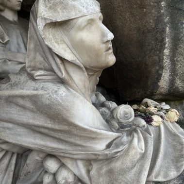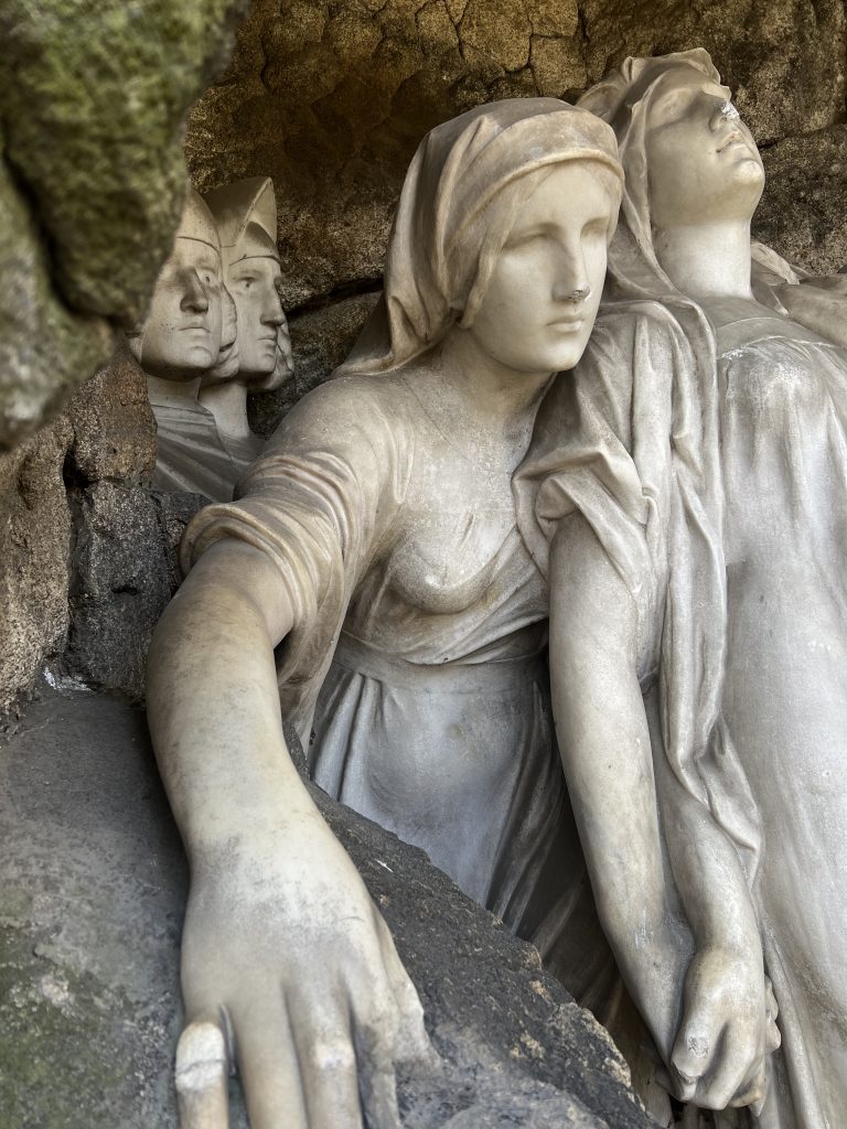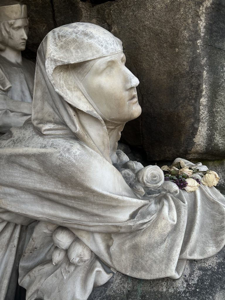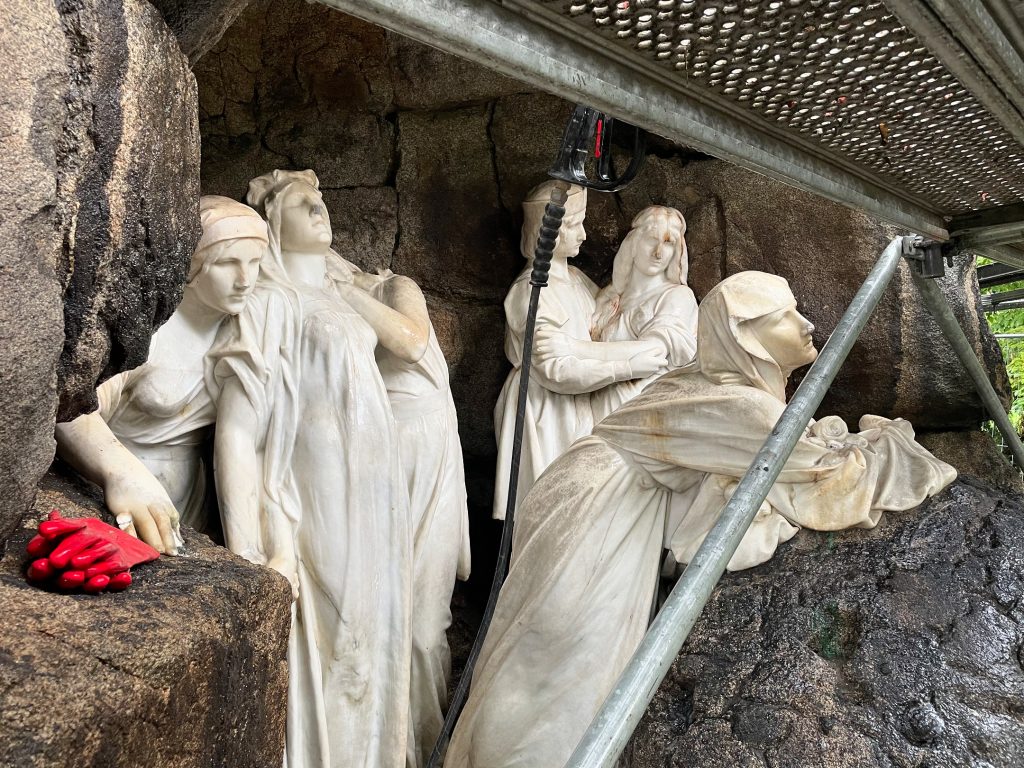 The project included the restoration of the marble sculpture in the niche of the monument. First, the surface of the sculpture was cleaned of biological growth, washed with steam, cleaned using cellulose wraps, and finally cleaned using laser technology.