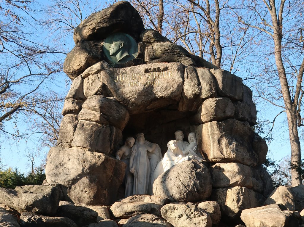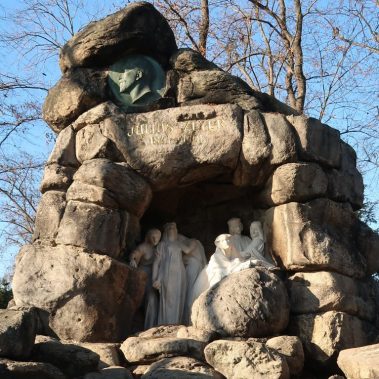 The restoration of monument to Julius Zeyer in Chotek Gardens, created by sculptor Josef Mauder in 1913, was part of a project involving extensive modifications to its surroundings, including paths, green areas, a bridge, the bottom and banks of ponds, a drainage system, and lighting installations.