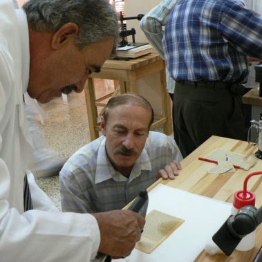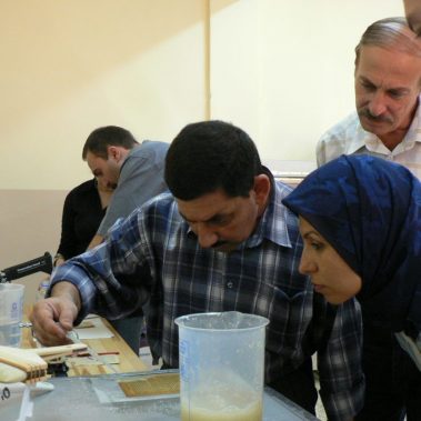 Školení se zúčastnili čtyři specialisté z INLA z Bagdádu a pět z různých kurdských institucí. Během 6týdenního kurzu se seznámili s postupy konzervování a restaurování papírového aktového archivního materiálu (čištění, dezinfekce, měření kyselosti papíru, odkyselování papíru, dolévání papírovou suspenzí, různé druhy oprav papíru) a se základy preventivní péče. Druhá část kurzu byla zaměřena především na tvorbu maket historické knižní vazby a na problematiku jejího restaurování.