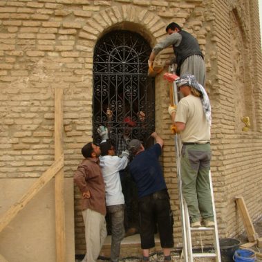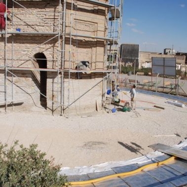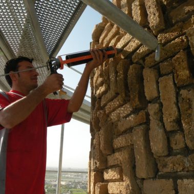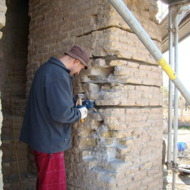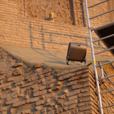 Ošetření zdiva zahrnovalo spárování všech spojů v celém cihlové konstrukci, konsolidaci a restaurování fragmentů obou keramických a sádrových dekorativních prvků, včetně retuše barevnosti a plasticity. Interiér obou schodišť byl rehabilitován. Cihly poškozené natolik, že ztratily pevnost, byly nahrazeny. Cihly použité na náhradu poškozených, byly vyrobeny dle historické technologie ve specializované cihelně, s ohledem na zachování historického poměru surovin. Použití veškerých materiálů bylo podloženo výsledky výzkumu původních materiálů, použitá spárovací malta byla tvořena modifikovanou alfa – sádrou a křemičitým pískem, jako hlavním agregátem. Dochované štukové architektonické prvky, jež byly v akutním nebezpečí zřícení, byly opět přikotveny k tělesu minaretu. Následně pak byly všechny dutiny, trhliny a praskliny důkladně vyplněny materiálem na základě modifikované sádry. Drenážní okruh pro svod dešťové vody z okolí minaretu byl vydlážděn replikami historických nízko-pálených cihlových dlaždic, zvaných” farší “, které byly finálně konsolidovány etylsilikátem.
