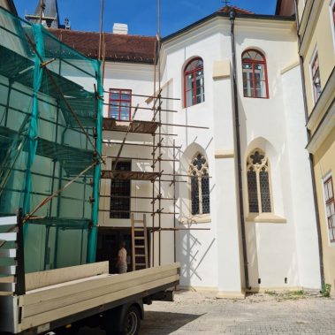 Předmětem prováděných prací jsou stavební úpravy areálu kláštera a kostela. Restaurátorské práce zahrnují restaurování kamenných prvků, opravy schodů, restaurování historických dveří a oken, restaurování vitráže křížové chodby, vitráže kaple v křížové chodbě a vitráže kostela sv. Jiljí, restaurování nástěnných maleb v křížové chodbě a v kostele Panny Marie Královny a sv. Jiljí. Veškeré práce jsou prováděny pod dozorem Národního památkového úřadu. Práce v areálu kláštera s děkanským kostelem Panny Marie Královny a sv. Jiljí jsou realizovány pro římskokatolickou farnost Třeboň.