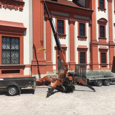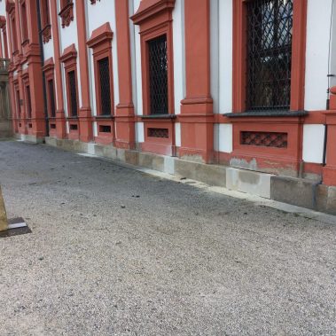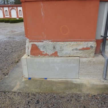 Po úspěšně provedených pracích na Trojském zámku v letech 2018-2020 byl realizován pro Galerii hlavního města Prahy nový projekt. Jeho předmětem byla restaurátorská a stavební obnova kamenného soklu, hladkého pískovcového pásu o výšce cca 43 cm, který obíhá celý obvod budovy letohrádku. Práce zahrnovaly rovněž horní část soklu, zalamující se podle jednotlivých prvků architektonického tvarosloví fasád, kamennou dlažbu čtvercového půdorysu, kamenný portál a balkon.