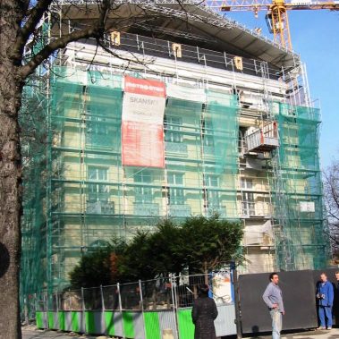 Největší podíl restaurátorských prací zaujímala renovace kamenné fasády budovy se sádrovými reliéfy a střídanými povrchy z místního mušlového vápence a umělého kamene.