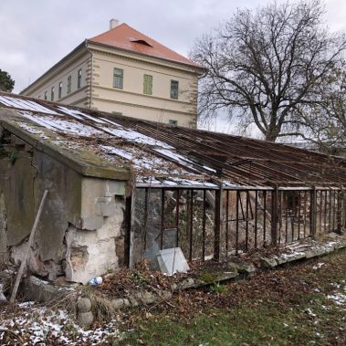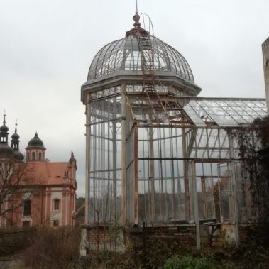 Cílem těchto prací je revitalizace areálu původně barokního skleníku. Objekt je jednopodlažní zahradní stavbou, nacházející se na terasách pod správní budovou zámku. Stavební vývoj skleníku a zahradního domku prošel třemi etapami. Původně barokní skleník byl ve druhé stavební etapě rozdělen na studený a teplý, s novým systémem vytápění. Poslední stavební etapou prošel koncem 19. století, kdy byl skleník doplněn prosklenou střechou, monumentální secesní palmovou obytnou částí z vídeňské dílny, a do topných kanálů byly zavedeny trubky horkovodních rozvodů.